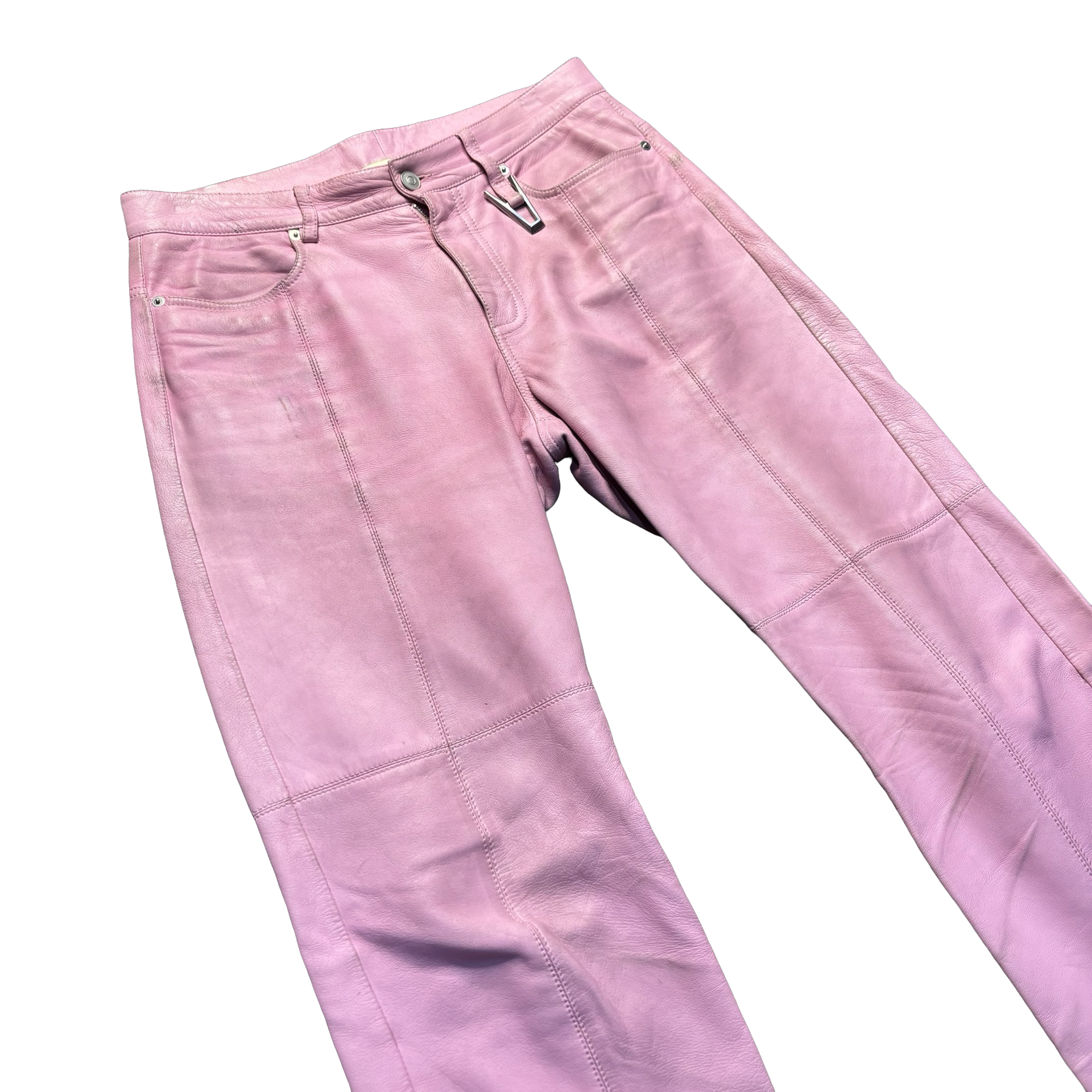 These pants from Alyx feature a soft pink leather that is highly durable.