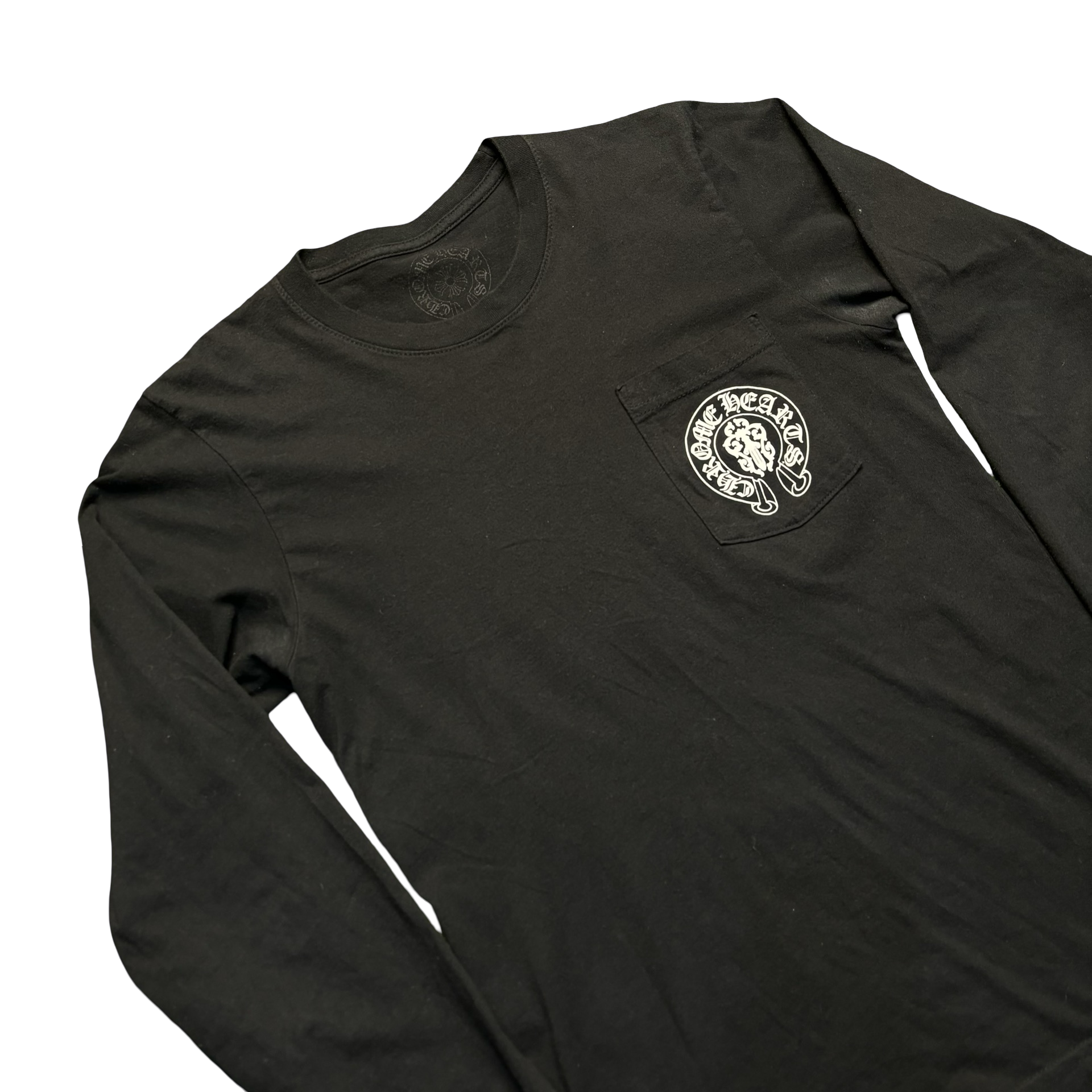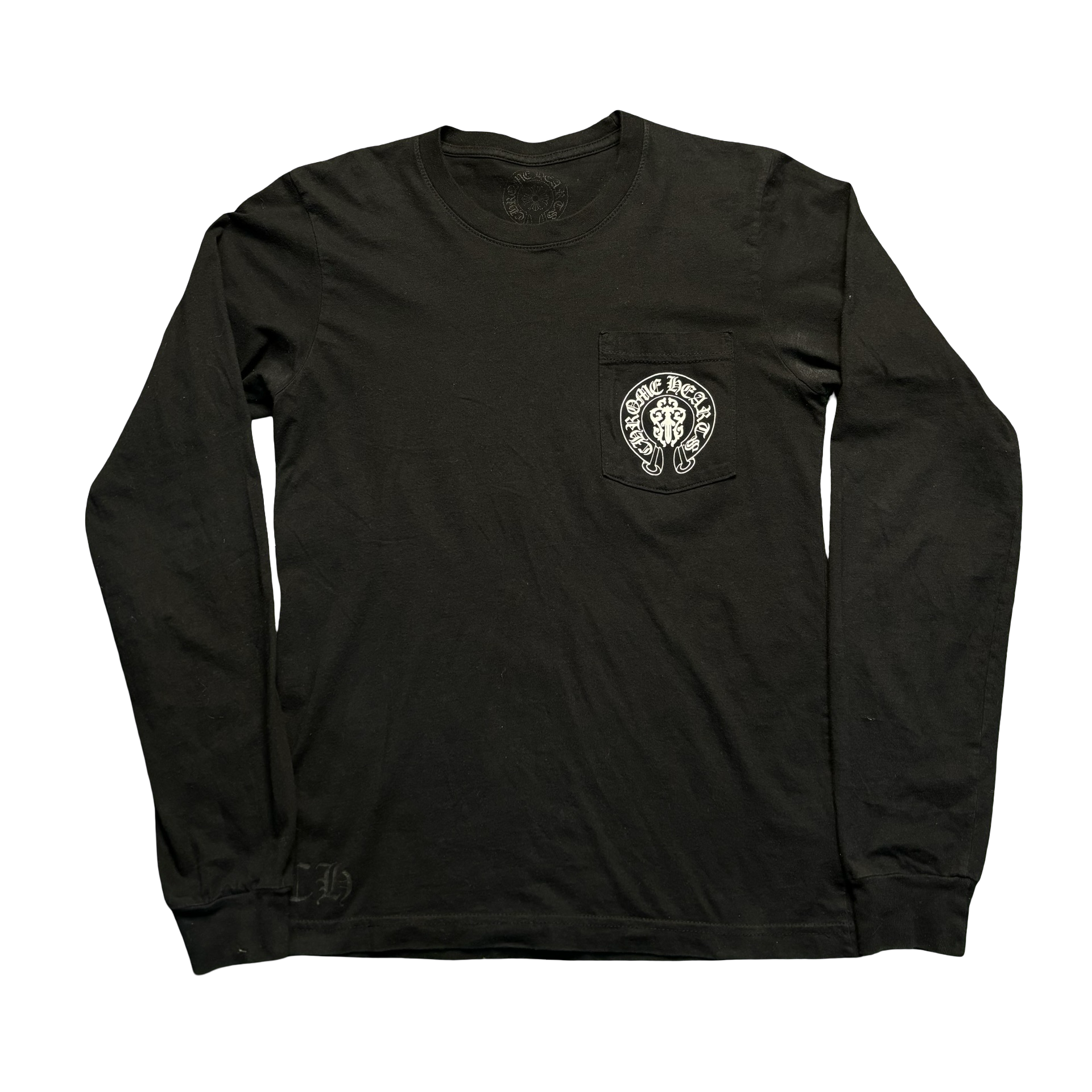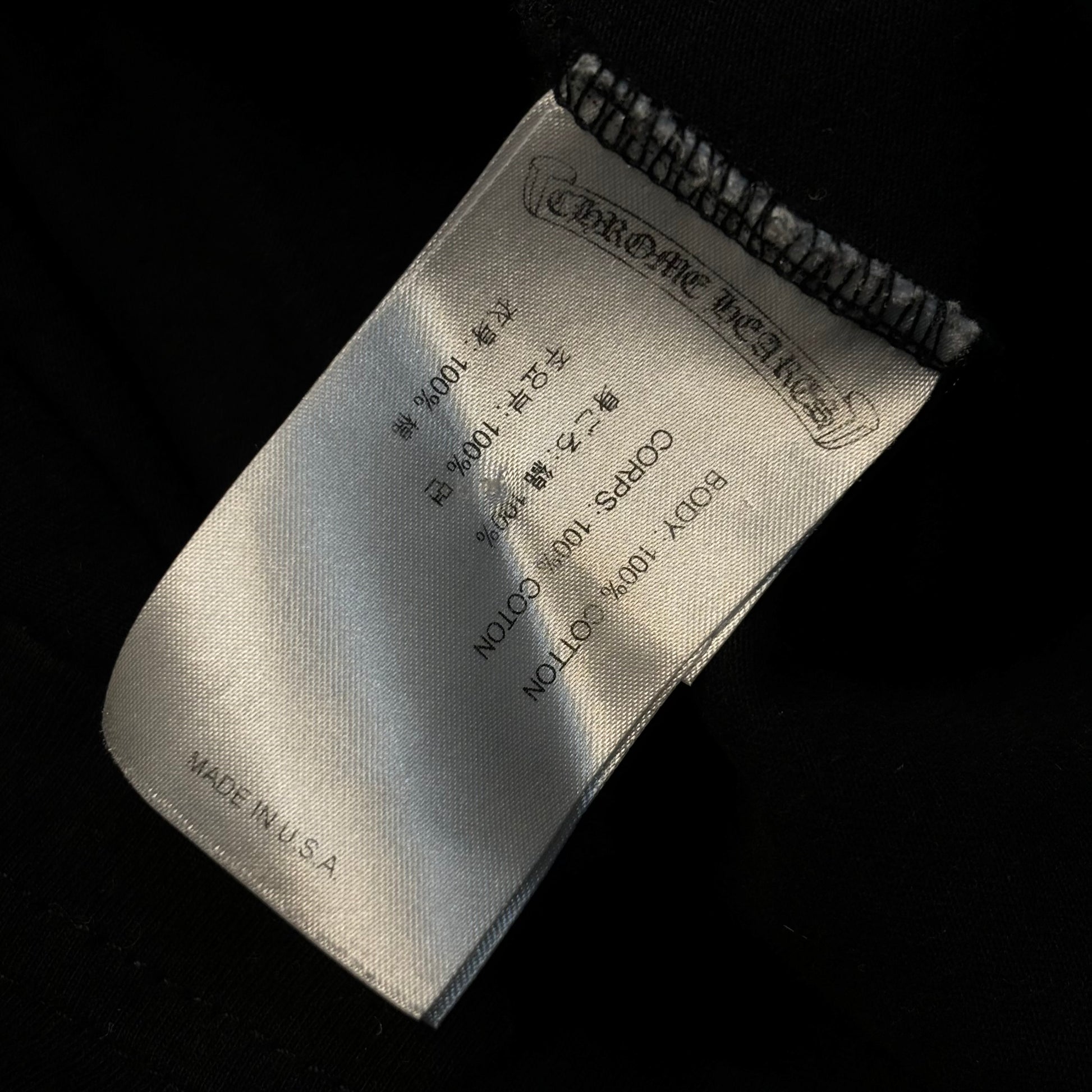 Staple design from Chrome Hearts featuring a Horshoe logo on the front with an American flag comprised of daggers on the back.