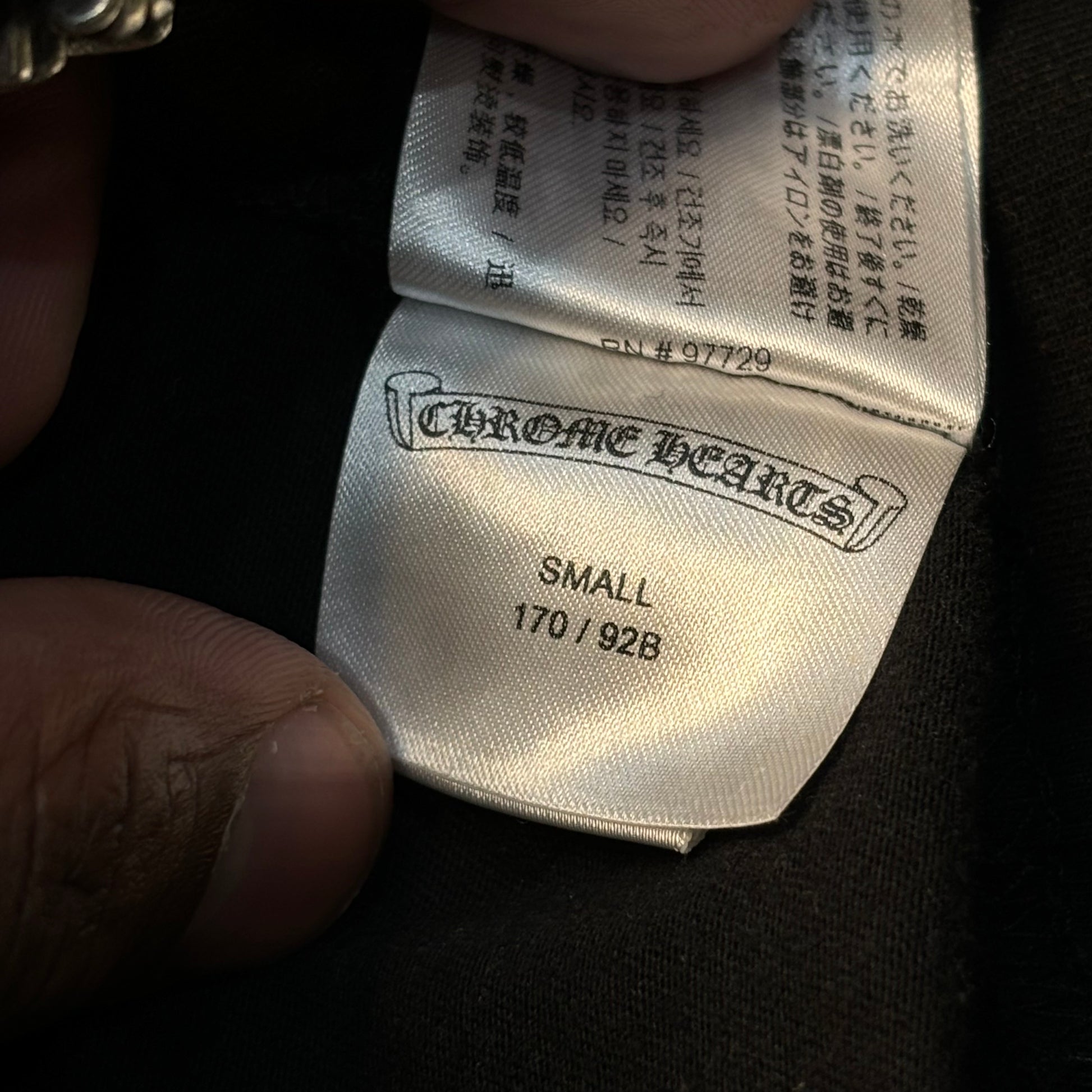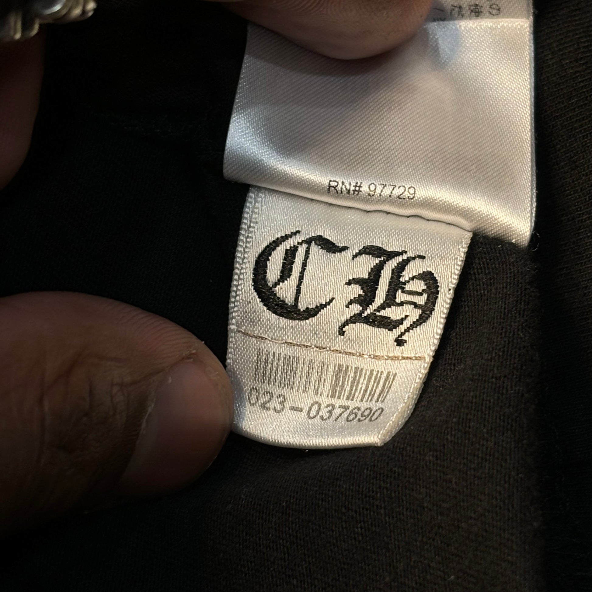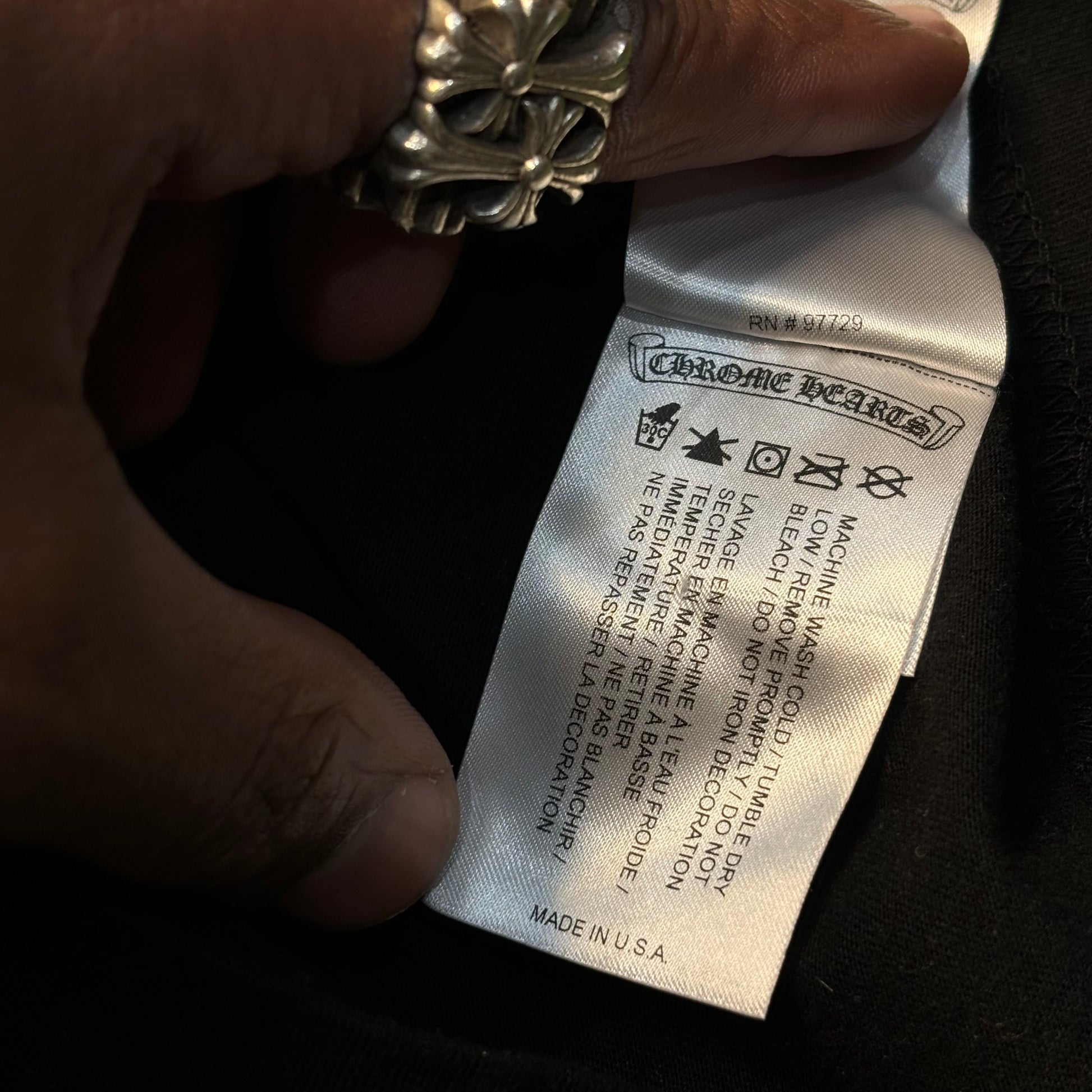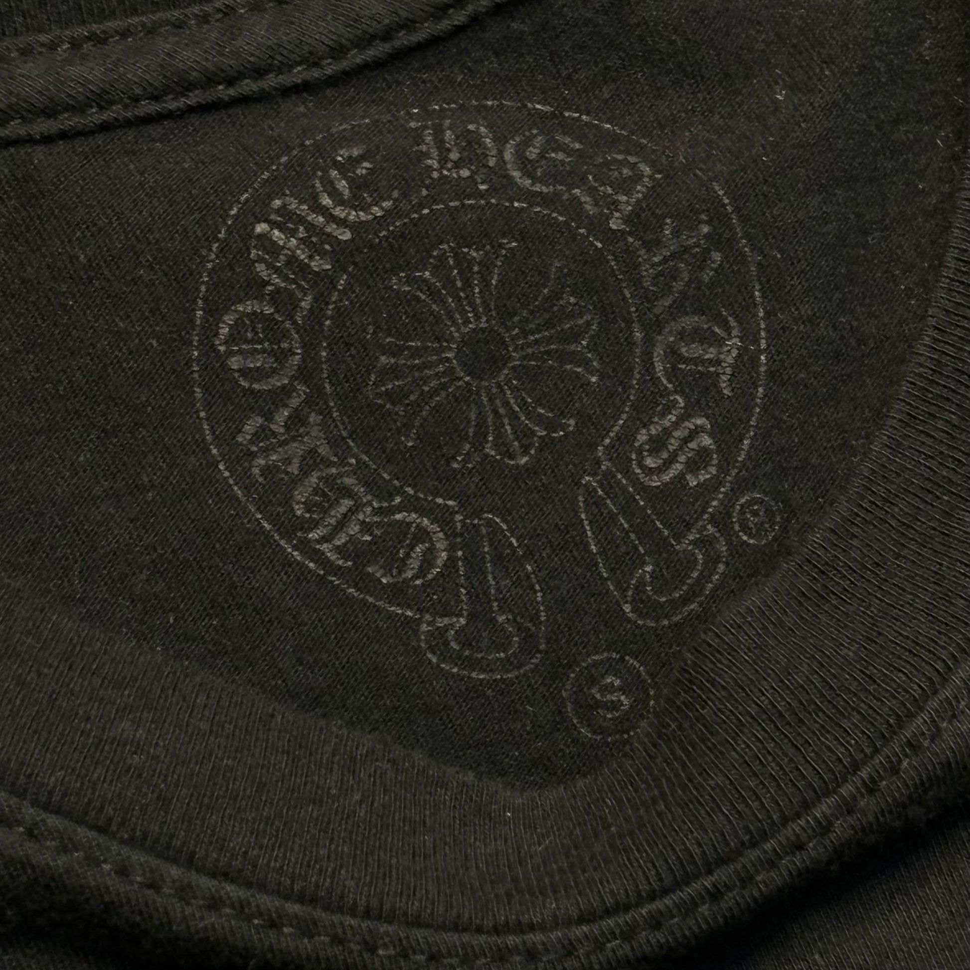 Staple design from Chrome Hearts featuring a Horshoe logo on the front with an American flag comprised of daggers on the back.